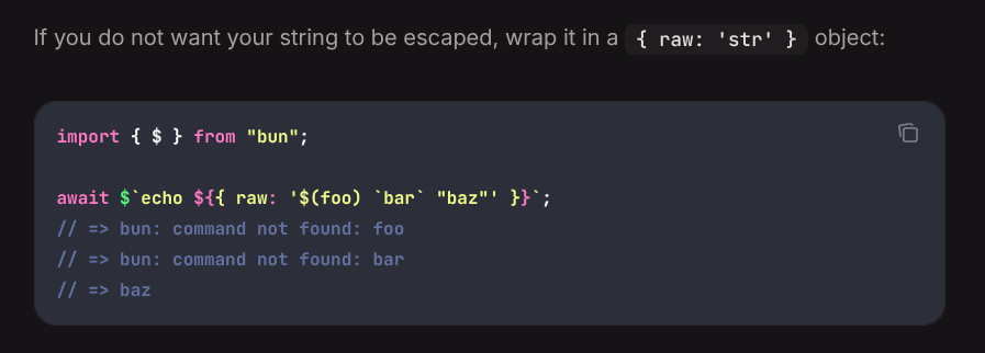 得到admin之后需要绕开限制执行rce,bun的设计输入shell的内容会被转义,但是留了个开发用的后门可以按原字符拼接进去